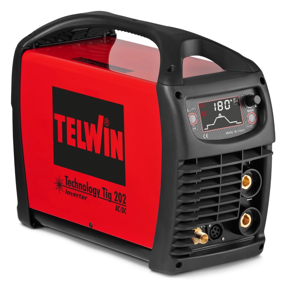 Saldatrice TELWIN TECHNOLOGY TIG 202 AC/DC inverter controllata a microprocessore per saldatura TIG, con innesco alta frequenza (HF) e LIFT, in corrente continua DC ed alternata AC, e saldatura ad elettrodo MMA.