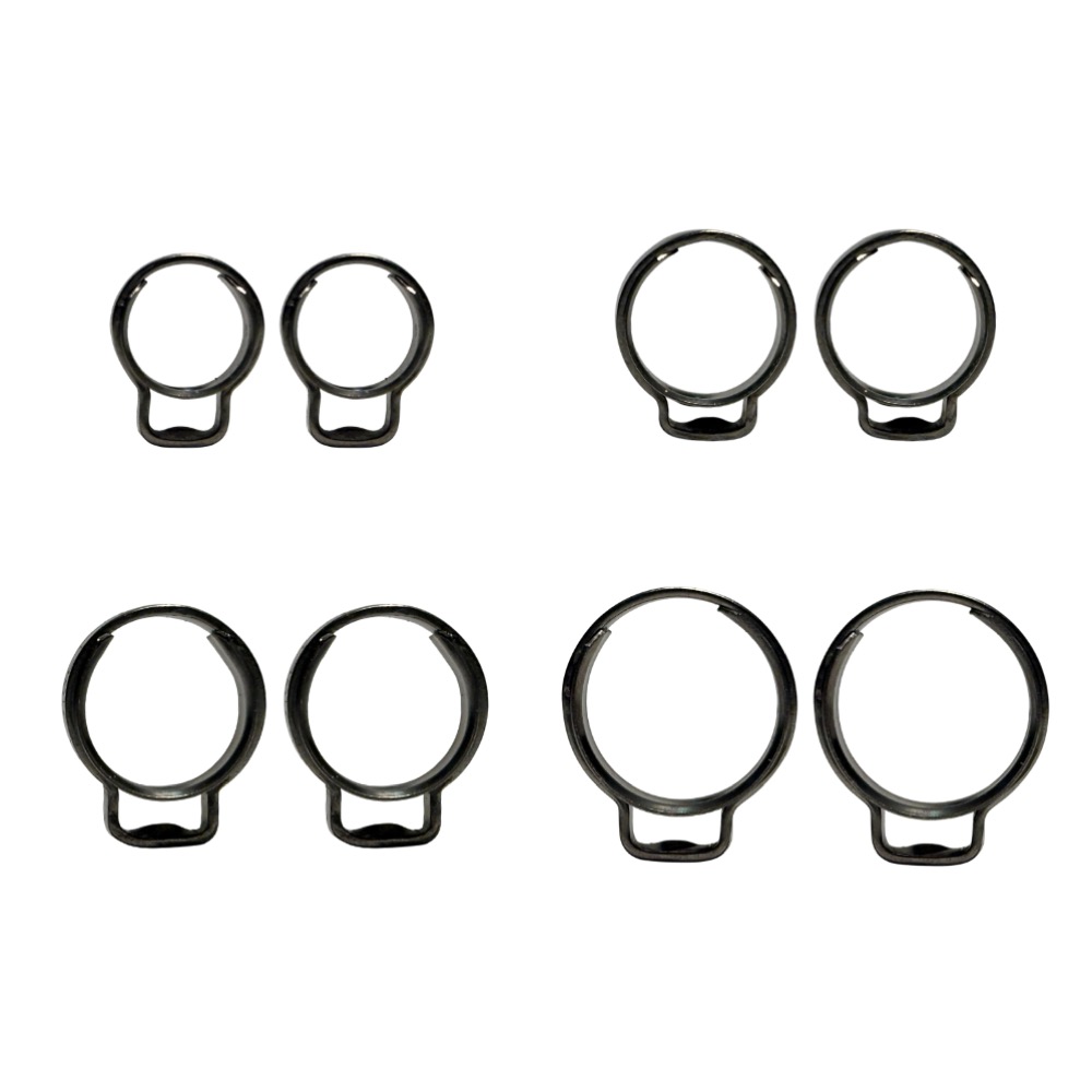 Fascetta metallica stringitubo pinzabile. Bordi sbavati per non danneggiare il tubo nella zona di serraggio.
