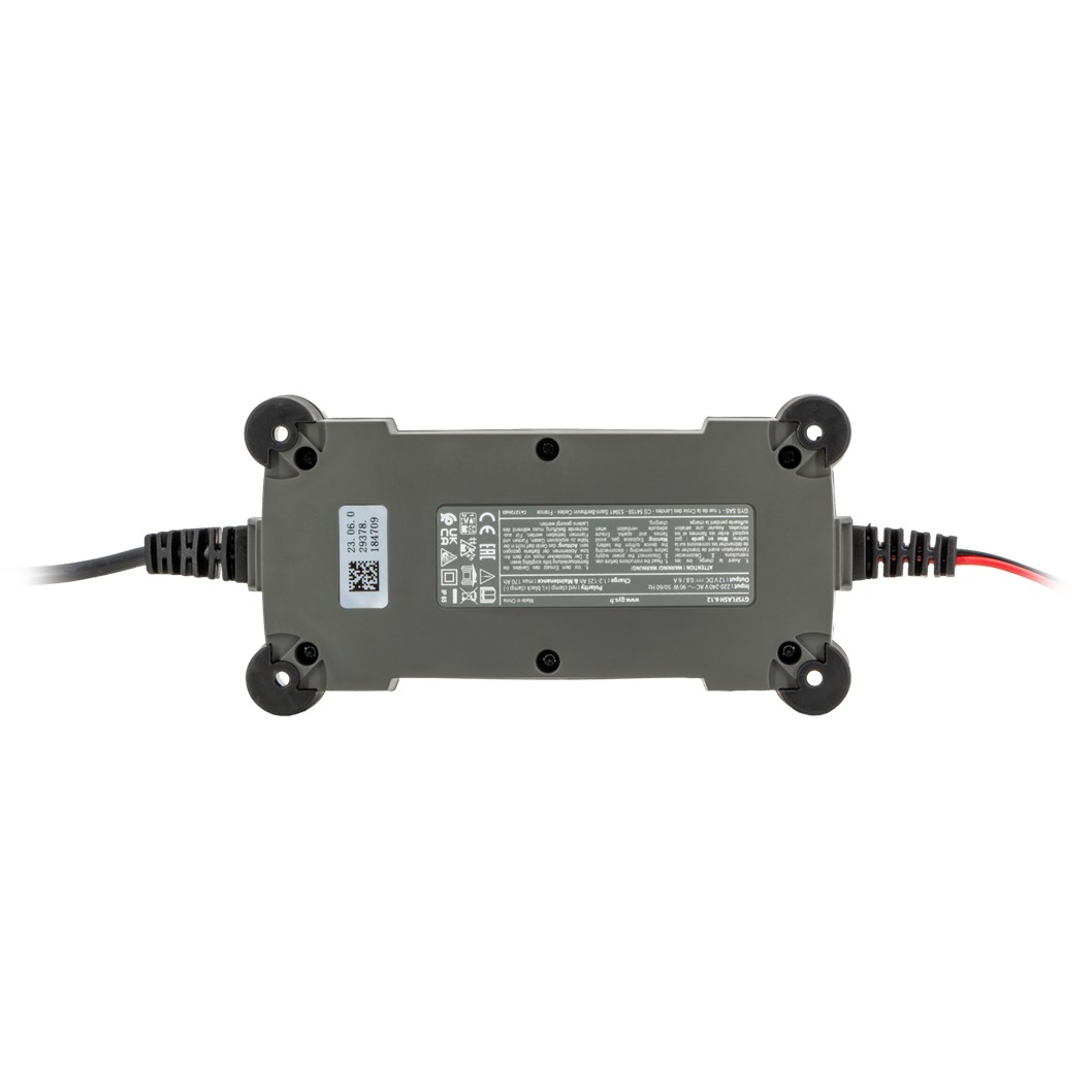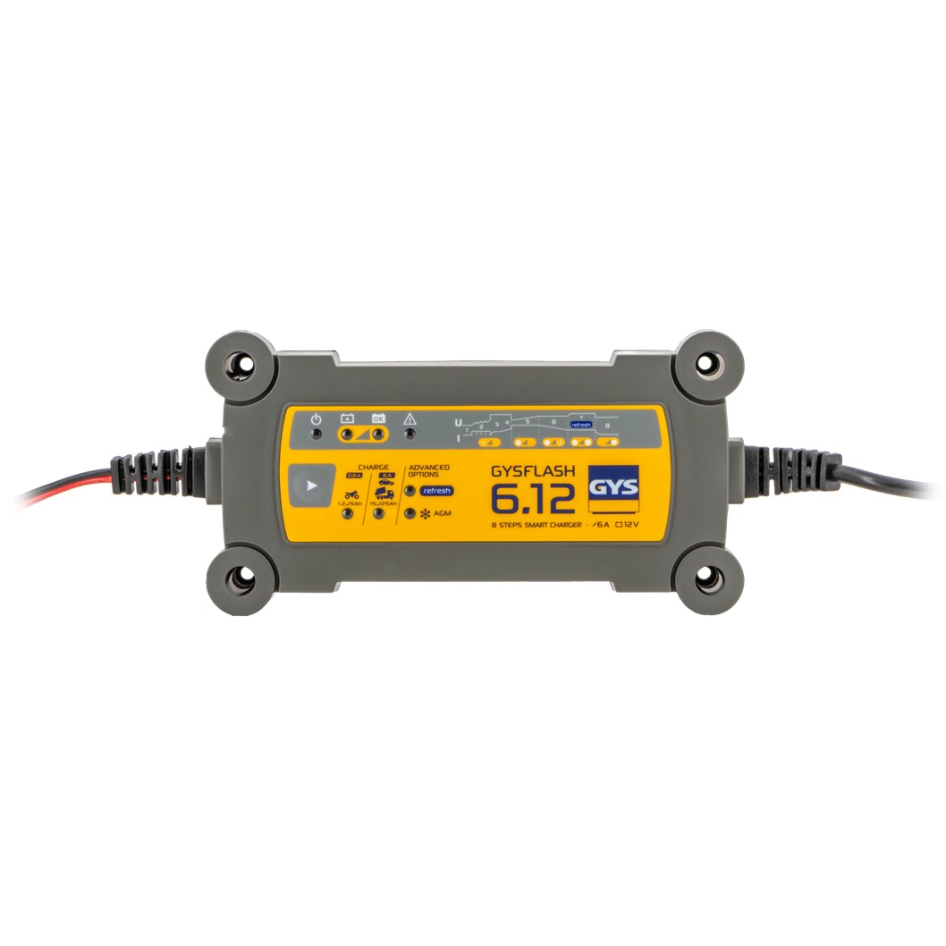 GYSFLASH 6.12 è un caricabatterie elettronico automatico 12V con curva di carica intelligente in 8 tappe, sviluppato per ricaricare in modo rapido e sicuro le batterie al piombo di city car, moto, moto d’acqua, go-kart, tosaerba e altri veicoli leggeri. La gestione automatica della carica garantisce tempi ridotti rispetto ai caricabatterie tradizionali da 6A, preservando allo stesso tempo la salute della batteria nel lungo periodo.
