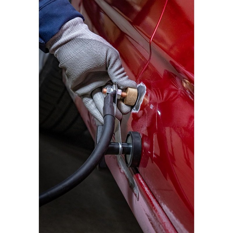 Questo innovativo sistema di “massa saldata” è progettato per fissare la massa su piccole parti decapate con uno spessore inferiore a 2 mm. Il sistema è dotato di un magnete di sostegno che consente l’utilizzo in tutte le posizioni, sia orizzontale che verticale, garantendo massima versatilità durante il lavoro di carrozzeria.