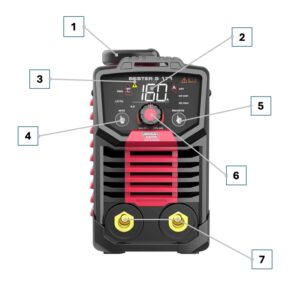- Display con indicazione corrente di saldatura, modalità di saldatura, parametri regolabili, diametro consigliato elettrodo