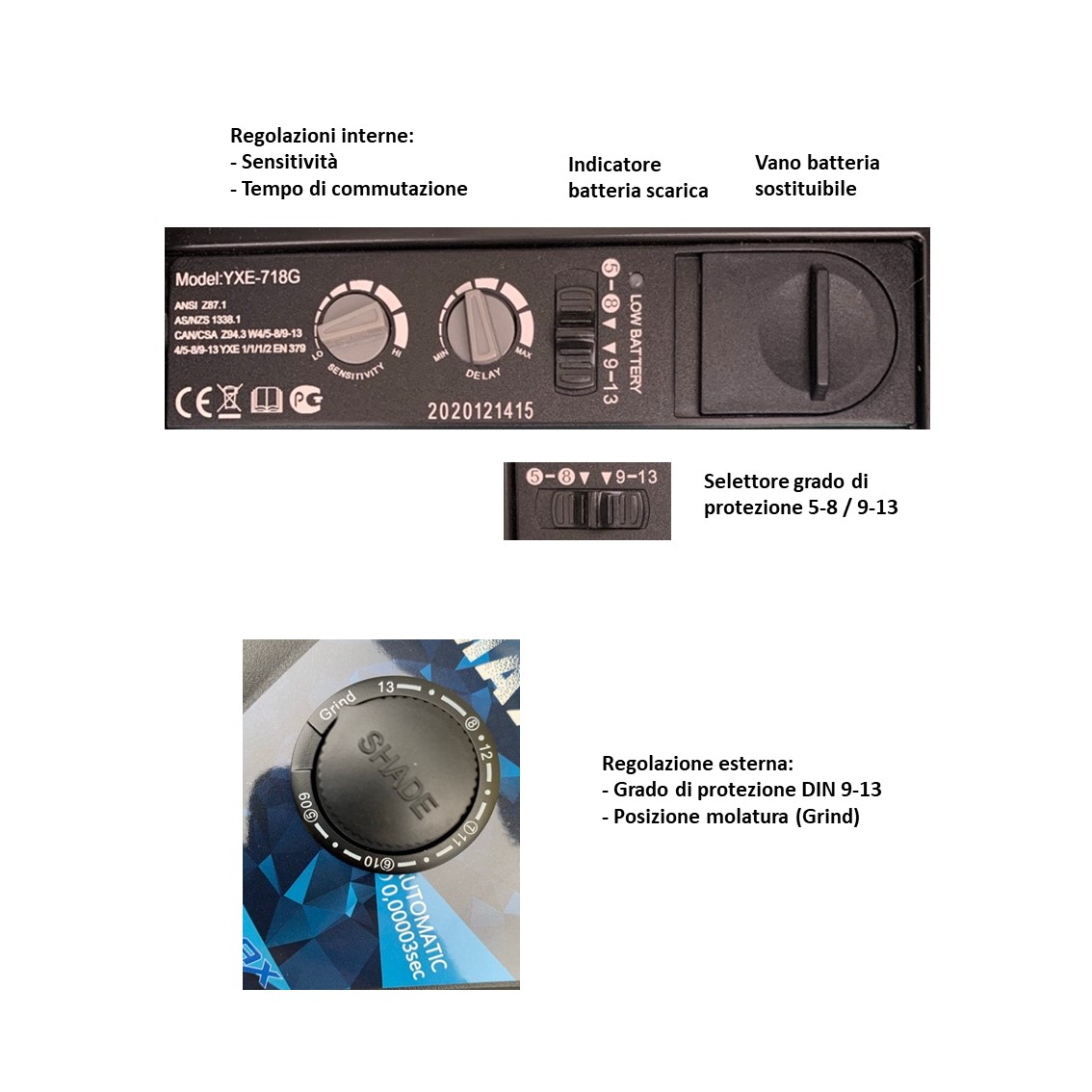 | Grado di protezione (scuro) | DIN 5-9 / 9-13 regolabile |